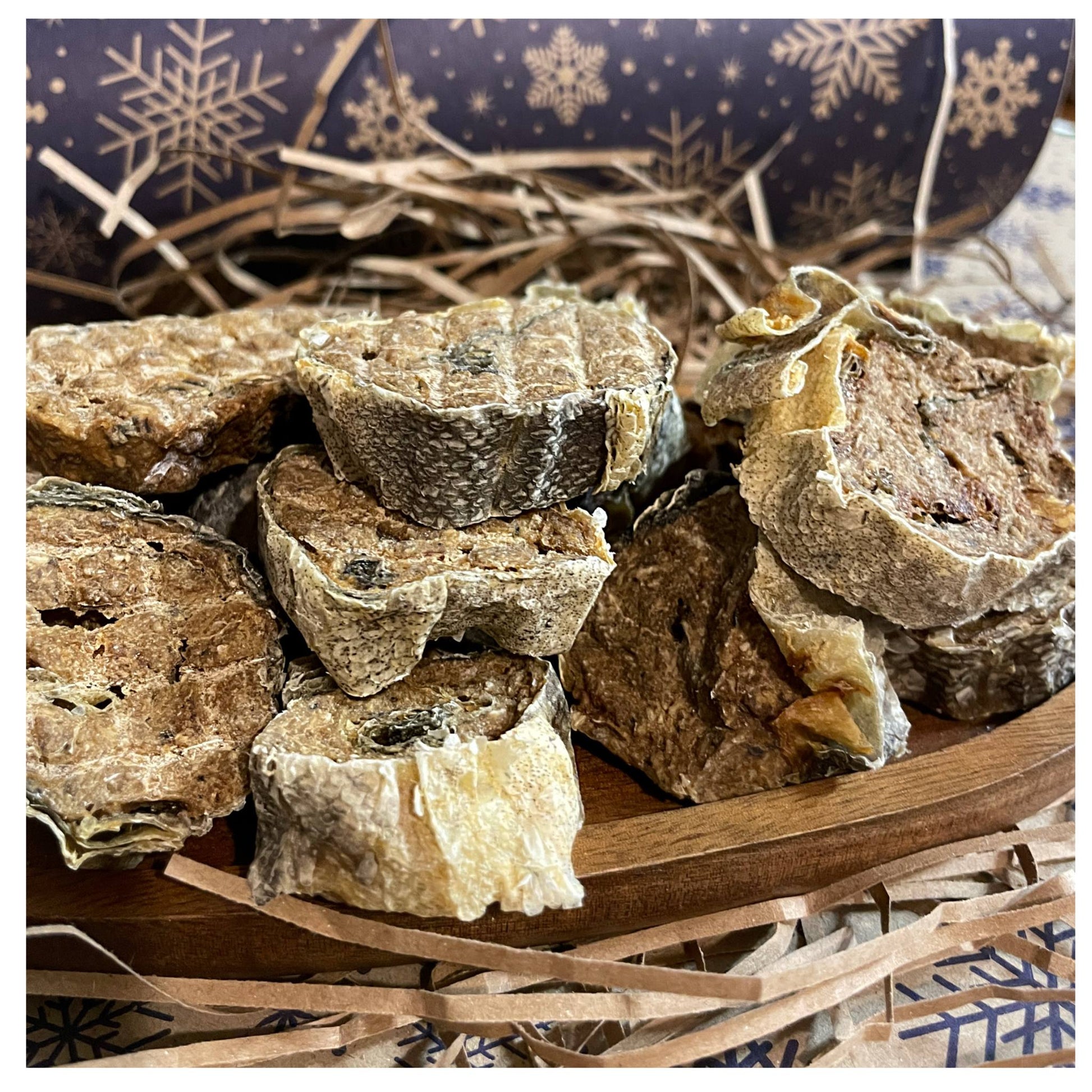 Crunchy, rolled, and absolutely irresistible - these sushi-style treats are made with a soft centre of whitefish, salmon, trout, and cod, wrapped tightly in crisp cod skin for an extra satisfying bite.